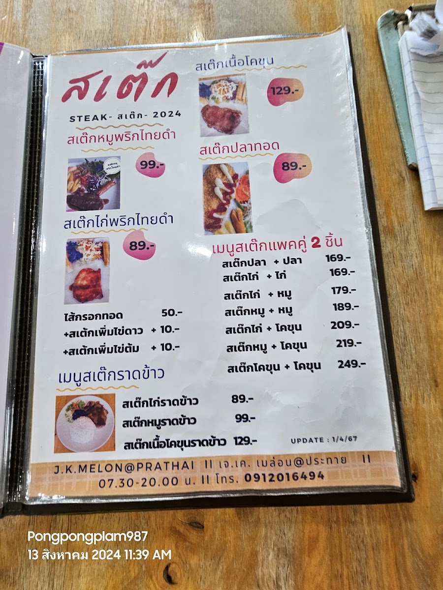 So, whether you're looking for a delectable bite or a cheerful caffeine fix, J.K.Melon@ประทาย is your go-to café. Don’t miss the chance to experience this gem on your next visit to Nakhon Ratchasima. Good food, friendly service, and a lovely vibe await you!